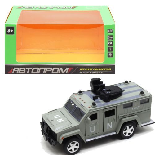 Інерційна військова машина. Висока деталізація. Відчиняються передні двері, є світлові та звукові ефекти. Масштаб – 1:32. Розмір іграшки 11х5х5 см. Виконана з якісного та міцного матеріалу.
