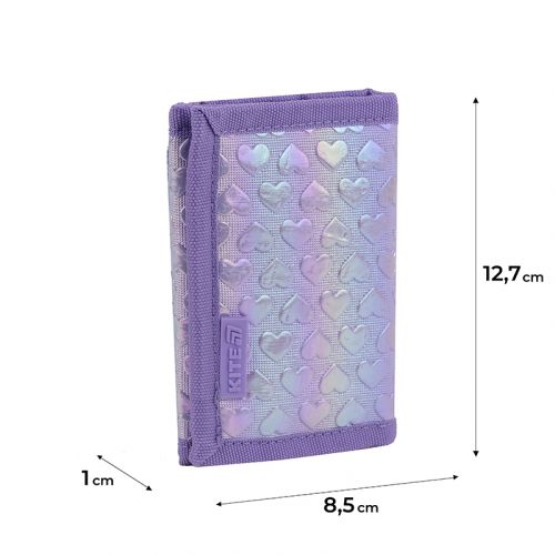Гаманець зовні: 1 відділення; 1 зовнішня кишеня на блискавці з сіточкою; зносостійкі блискавки; надійна фурнітура. Гаманець всередині: 5 кишень для карток; кишеня для монет на липуці; ключниця. Декор: голографічна PU тканина