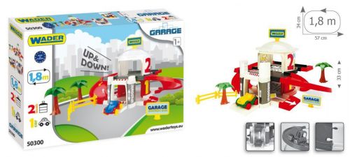 Гараж з ліфтом, 2 поверхи. Ігровий набір, в який входить 2-х рівневий гараж з ліфтом, 1 машинка, 2 пальми і 1.8 метра дороги. Великі елементи.