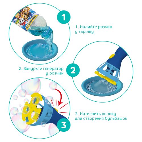 Пристрій для пускання мильних бульбашок – це весела іграшка, яка подарує море радості дітям та дорослим! Просто зануріть пристрій у спеціальний розчин, що входить у комплект, натисніть на кнопку – і безліч яскравих мильних бульбашок змиють у повітря. У наборі також є зручна миска для розчину. Ідеально для ігор на вулиці та свят!