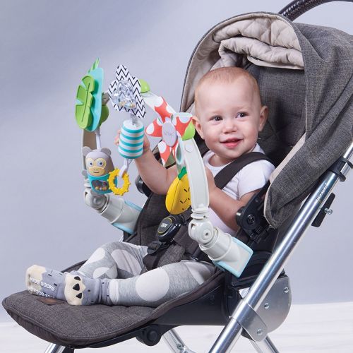 Гнучка дуга для коляски ‘Тропічний оркестр’ – це три іграшки, які занурять малюка в гармонію тропіків, де бігають веселі мавпочки, світить сонечко і ростуть ананаси.