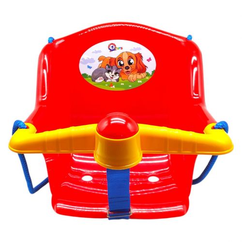 Яскрава підвісна дитяча гойдалка. Її можна устаналівать як в приміщенні, так і на вулиці. Має мʼякий ремінець, який допомагає надійно зафіксувати малюка в качельці.
