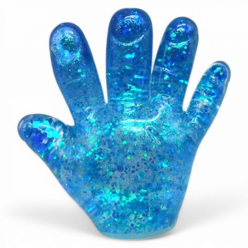 Цікава іграшка-антистрес у формі долоньки. У рамках даної серії присутні різні забарвлення. Мерехтливі блискітки всередині іграшки, які переливаються на сонці. Знімає стрес та допомагає розслабитися. Гарно тягнеться та має гелеподібний наповнювач. Саме завдяки такому наповнювачу іграшці можна надавати різні причудливі форми. Виготовлена з якісних та безпечних матеріалів. Рекомендовано для дітей від 4 років.