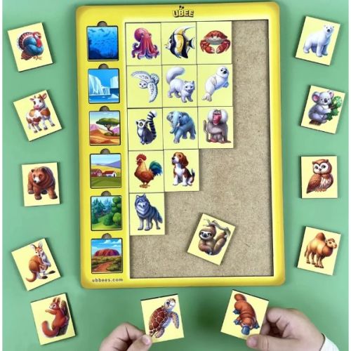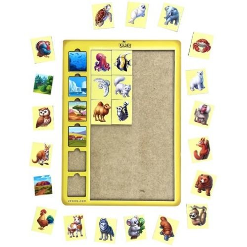 Набір вкладок з різноманітними тваринками, захоплива гра головна ціль якої завдяки асоціаціям розставити тварин у довкілля!. Екологічна іграшка, що розвиває логіку шляхом поєднання тварин з їх місцевістю. У наборі присутні 30  різних деталей. Виготовлено з дерева. Рекомендовано для діток від 4 років.