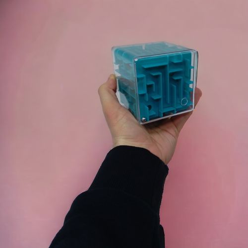 Оригінальна іграшка-головоломка у вигляді куба-лабіринту з металевою кулькою всередині. Кульку потрібно провести лабіринтом, керуючись стрілочками, які можна розглянути на поверхні. Іграшка виконана із міцного пластику. Розмір іграшки – 9 х 9 х 9 см.