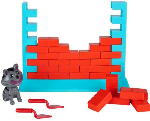 Гра для 2-4 гравців по типу популярної гри “Дженга”..Зберіть підставку, побудуйте стіну з цегли і встановіть на неї кицю. Визначте, хто зробить перший хід. По черзі розбирайте стіну за допомогою кельми. Програв той учасник, в чий хід киця впала. Гра підходить дітям від 6-ти років.
