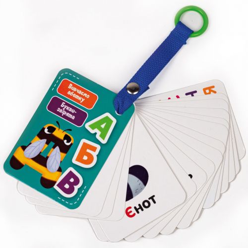 Вивчаємо літери, знайомимось з тваринами, виконуємо цікаві завдання, граємо будь-де і будь-коли! Адже картки на ремені можна взяти із собою в подорож чи на прогулянку. 18 карток. Граючи з картками, дитина зможе тренувати логічне мислення, дрібну моторику рук, памʼять та уяву. Виконані із міцного картону.