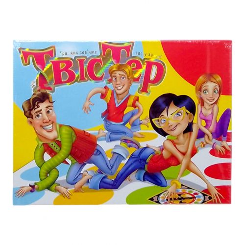 Плитка на гра “Твістер гранд”. Правила гри: гравець крутить рулетку, яка показує що поставити (яку руку або ногу) на гурток певного кольору. Не можна торкатися “поля” колінами і ліктями. Комплектація: ігрове поле, рулетка, кнопка, стрілка.