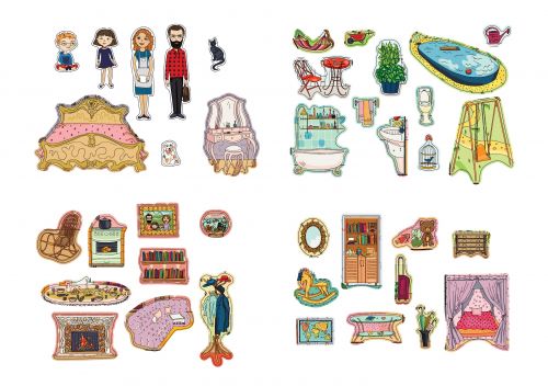 Гра з багаторазовими наклейками “Ляльковий будиночок” призначена для гравців, віком від 4-х років. У комплекті: великий плакат (41 х 60 см), на якому намальований будиночок з безліччю кімнат і набір багаторазових наклейок (39 шт) з зображеннями членів сім’ї і різних меблів. Необхідно заповнити будиночок меблями і аксесуарами, наклеївши наклейки на плакат.
