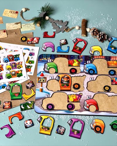 Гра з картками “Тварини на машинках”. В наборі 42 деталі і 12 карток. Дитина має зібрати усі машинки так, як на картці-завданні. Усі деталі взаємозамінні, тому можна пофантазувати і зібрати так, як малюк сам собі придумав і уявив. Допоможе розвивати дрібну моторику, логічне мислення, координацію рухів, увагу та пам’ять. Виготовлено з якісних та безпечних матеріалів.