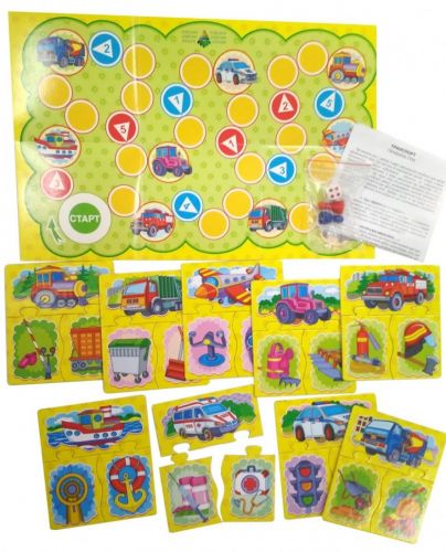 Розвиваюча асоціативна дидактична гра для дітей дошкільного віку підійде як для занять вдома, так і в дитячому садку. У комплекті є: ігрове поле (22х34 см.), 9х3 комплектів головоломок. 2 ігрові фішки, кубик, правила гри. Є 8 варіацій гри.