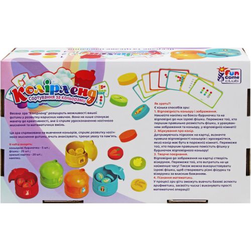 Гра “Колірленд” – це захоплюючий спосіб розвивати різні навички у вашої дитини. Вона не лише стимулює творчість, але і сприяє розвитку логічного мислення, вмінню аналізувати, тренує увагу та памʼять.