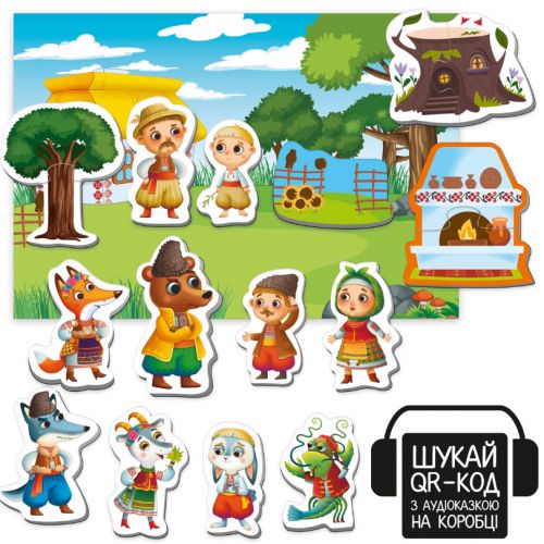 Гра + казка = Гра настільна Vladi Toys магнітний театр з аудіоказкою Казкові голоси. Найперші казочки для малюка з можливістю пограти і влаштувати спектакль за допомогою магнітних персонажів під прослуховування казки, і просто включити послухати казочку, коли батьки зайняті. Персонажі чудово розміщуються на магнітній поверхні, в якості якої може виступити, наприклад, магнітна дошка чи холодильник. Шукай аудіоказку за QR-кодом на коробці, скануй, переходь за посиланням та слухай.