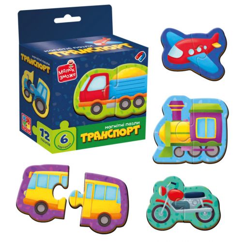 Барвисті пазли з тваринками. Така іграшка є веселою можливістю поглянути на те, на що здатні магніти та як гарно деталі тримаються між собою. Ігри з пазлами чудово розвиватимуть дрібну моторику рук, увагу, та допоможуть дитині вивчити транспорт. Виготовлено з якісних та безпечних матеріалів. Рекомендовано для дітей старше 3 років.