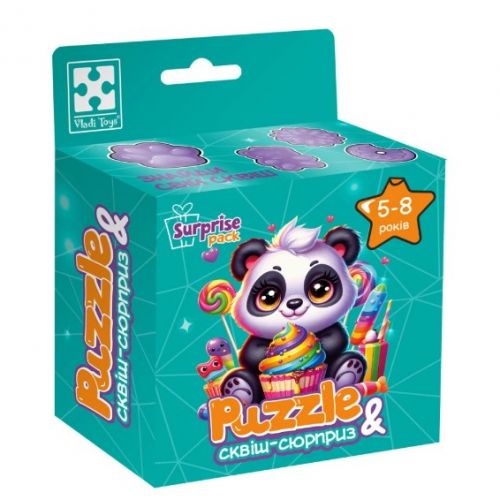 Набір пазлів “Панда” – це захоплива можливість зібрати яскраву картинку, а за свої старання отримати ще й подарунок-сюрприз у вигляді сквішика-рандомки! У комплекті 180 різноманітних деталей, виготовлених із міцного картону. Пазли допомагають розвивати логічне мислення, дрібну моторику та посидючість. Для дітей віком від 5 років.