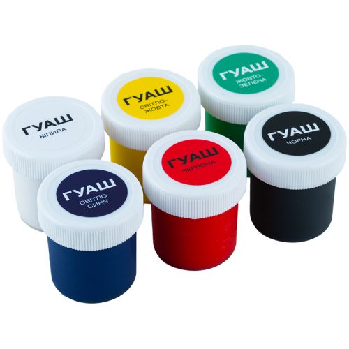 Гуаш Kite містить 6 кольорів. Баночки по 20 мл зберігаються в картонній упаковці. Кольори яскраві і насичені, легко змішуються. Фарби приємної однорідної текстури, рівномірно наносяться на поверхню. Змиваються зі шкіри та інших поверхонь мильною водою. Фарби сприяють емоційному та мовному розвитку дитини, а також сприйняттю кольорів. Дитина навчиться змішувати фарби і створювати нові кольори. Дитячі фарби нейтрального запаху. Фарби виготовлені з натуральних компонентів з додаванням консервантів, не містять шкідливих речовин. Рекомендовано дітям дошкільного та шкільного віку.