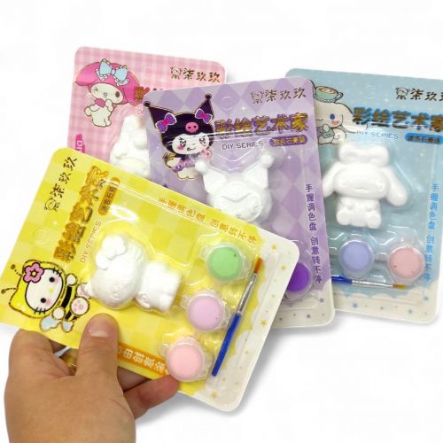 Цей продукт пропонує чудову можливість проявити творчість і слугує чарівним аксесуаром для шанувальників Sanrio. Набір містить усі необхідні матеріали для розфарбовування фігурки – три кольори та пензлик. Матеріал фігурки дозволяє їй ефективно вбирати фарбу протягом тривалого часу. Після висихання її можна виставити як чарівну прикрасу.