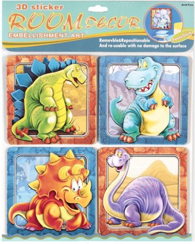 Набір яскравих 3D наклейок із зображеннями динозаврів. За допомогою них можна прикрасити дитячу кімнату, створивши дитині особливу атмосферу.