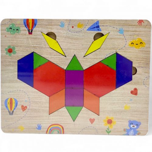 Деревʼяна головоломка “Танграм Метелик” сприяє розвитку логічного мислення та дрібної моторики у дітей. Набір складається з деревʼяної рамки та елементів різної форми, які необхідно розмістити всередині рамки. Роздумуючи, яке правильне вирішення головоломки, дитина використовує всі свої розумові здібності. Рекомендовано для дітей старше 3-х років.