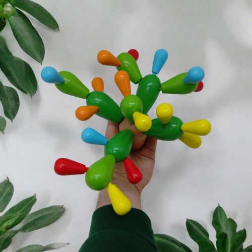 Деревʼяна пірамідка-конструктор «Кактус» – це захоплива іграшка для дітей. Яскраві деталі різного розміру вставляються в основу і в деталі більшого розміру за допомогою пазів, дозволяючи створити унікальний кактус. Гра сприяє розвитку моторики, логіки та уяви. Основа, 27 елементів.