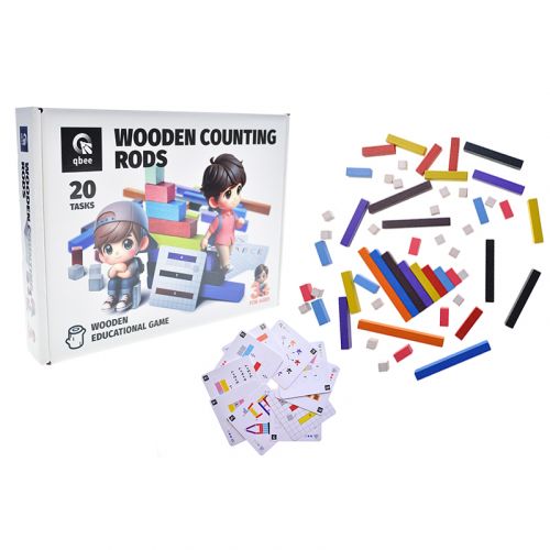 Універсальний дидактичний набір для дошкільнят та школярів молодших класів. Кожна паличка має свою довжину та колір та позначається відповідним номером. Ці характеристики можна використовувати для різних навчальних вправ. Підходить для навчання за методикою НУШ (нова українська школа). 56 елементів, 10 двосторонніх карток із завданнями.