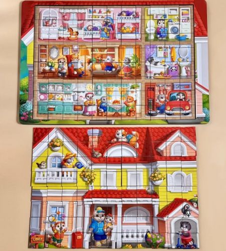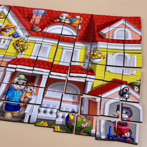 Величезний деревʼяний двошаровий пазл “Котячий будиночок”. Цей яскравий пазл на 176 деталей справжній скарб для розвитку посидючості та уважності у діток. Розмір пазлу 48х32 см. Рекомендований вік: 4+ років. У наборі 22 котика, яких треба пошукати;) У котиків є: дитяча кімната; вітальня; кухня з їдальнею; санвузол з пральнею; ванна кімната; гараж. З цією грою точно не занудьгуєш;) Грати можна довго та весело.