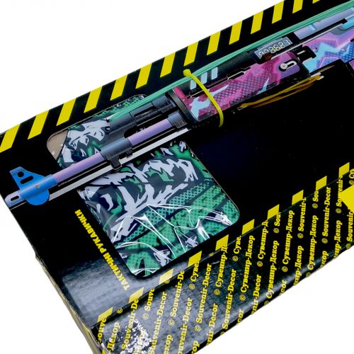 В комплекті з автоматом є: рукавички, резинки, брелок и фішки. Сприяє розвитку влучності, координації рухів та уяви, пропонуючи безпечну та захоплюючу ігрову альтернативу.