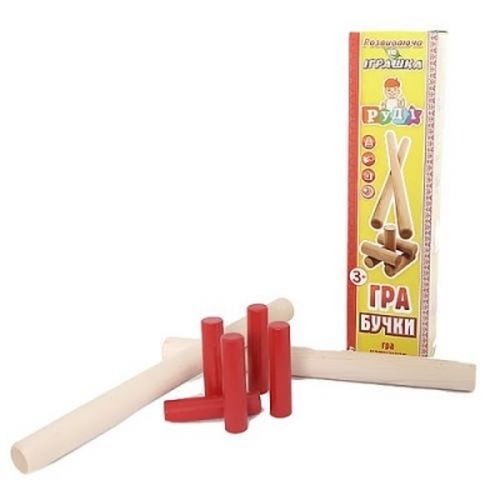 “Бучки” – спортивна гра за принципом “Городков”. Правила гри: вибрати майданчик, накреслити квадрат 60 х 80 см, провести лінії на відстані 6 і 3 метри від квадрата. Перша фігура вибивається “Бучко” з шести метрів. Наступні – з 3-х. Гра призначена для 2-х команд. Необхідно вибивати “Бучки” за межі квадрата. Гра виготовлена з екологічних матеріалів. У комплекті: дерев’яні бруски (5 шт.) довжина 8 см.діаметр 1 см., “Бучки” (2 шт.) довжина 30,5 см., діаметр 1,5 см., iнструкція.