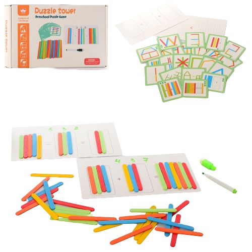 Комплектація: Рахункові палички, 25 карток із завданнями, маркер, 2 картки для прикладів