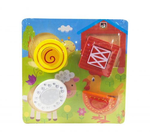 Дерев’яна рамка-вкладиш “Ферма”. Завдання дитини: розмістити деталі ферми в спеціально відведених місцях. 8 деталей.