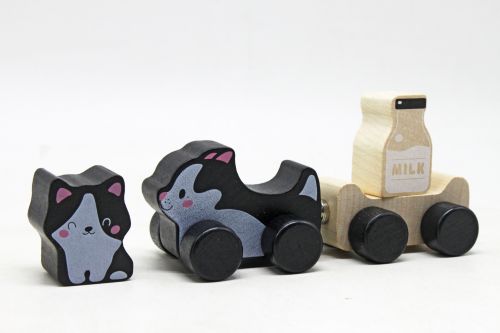 Комплектація: Кішка, причіп, кошеня, молоко