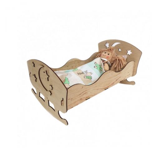 Дерев’яне ліжко для ляльок, виготовлене з фанери. Підходить для ляльок (Барбі, Монстр Хай тощо). Виготовлено зі шліфованого та ламінованого дерева. Легко збирається із 5 деталей. Розмір ліжечка 43х23 см.