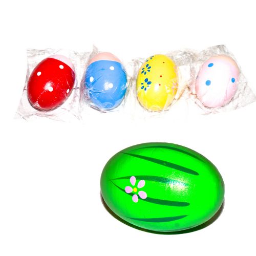 Дерев’яне яйце-брязкальце в яскравій забарвленні. Якщо його потрясти – лунає веселий звук. Різні види.