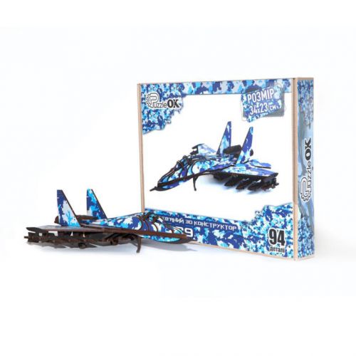 Дерев’яний 3D конструктор складається з 94-х деталей. Набір виконаний з екологічних та безпечних матеріалів. Складання конструкції порадує як дітей, так і дорослих. Розмір літака у зібраному вигляді: 34х23 см. Виготовлено в Україні.