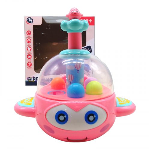 Після натискання кнопки зверху починають крутитися різнокольорові кульки. Усередині літака є кілька кольорових отворів, в які діти повинні спритно направляти кульки. Додаткова складність – зробити так, щоб колір отвору відповідав кольору мʼячика. Це не тільки розвиває координацію та моторику, а й створює додатковий елемент ігрового виклику.