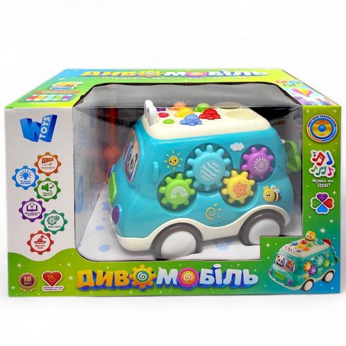 Іграшка диво-мобіль допоможе дитині краще пізнати різноманітні звуки, дасть змогу почути цікаві казки, пісні, або ж скласти свою за допомогою ксилофона. Іграшка має підсвічувані елементи. Сприяє фіксуванню уваги та розвитку дрібної моторики за рахунок різних цікавих ігор, які поєднані в машинці.