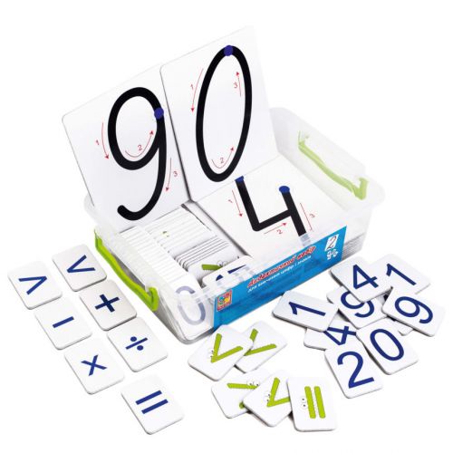 Набір складається з 10-ти демонстраційних магнітів з каліграфічним написанням цифр, 40 магнітів із зображенням друкованих цифр, 20 магнітів із зображеннями математичних знаків та 12 магнітів із зображеннями знаків для порівняння “Цифроїд”. Набір допоможе дитині познайомитися з основами математики та навчитися вирішувати прості приклади.