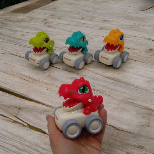 Цікава заводна іграшка виконана у вигляді кумедного мультяшного динозаврика. Іграшка почне рухатись вперед, якщо натиснути на голову. Виготовлена машинка з якісного та міцного пластику. Має приємне матове покриття. Колеса досить великі та вкриті шаром гуми. Розмір машинки – 8х8,5х9 см; діаметр коліс – 3,3 см.