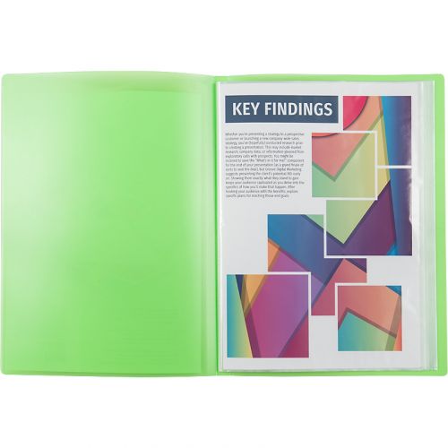 Дисплей-книга з кишенею, А4, 20 файлів, прозора зелена