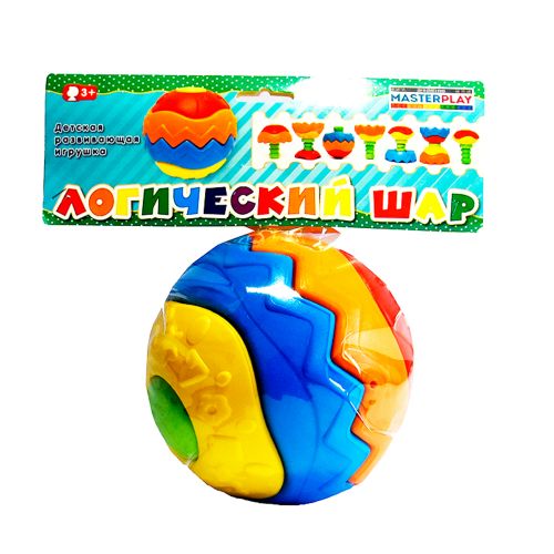 Дитяча розвиваюча іграшка “Логічний куля”. Складається з 5 елементів: стрижня, на який низах інші 4 деталі. Нанизувати можна в різному порядку, тим самим змінюючи форму конструкції.