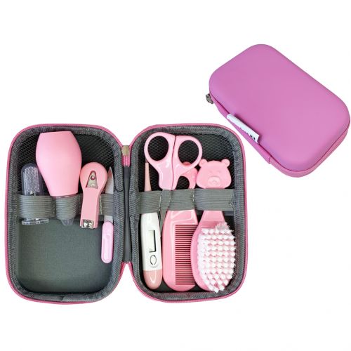 Комплектація: електронний термометр, манікюрні інструменти (ножиці, пилочка та кусачки), пластиковий гребінець, щітка з синтетичним ворсом, силіконова зубна щітка на пальчик, аспіратор механічний