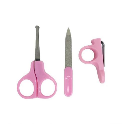 До складу набору входять три предмети – ножиці, пилочка і кусачки. Ножиці мають закруглені кінчики, що не дозволяють травмувати ніжну дитячу шкіру, і зручні пластмасові ручки. Ручки виконані з кольорової пластмаси, інша частина виробів зроблена з металу.