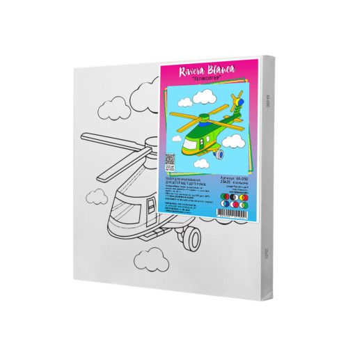 Комплектація: синтетичне полотно з нанесеними контурами майбутнього малюнка, натягнуте на дерев’яну рамку; водорозчинні акрилові фарби; пензлик