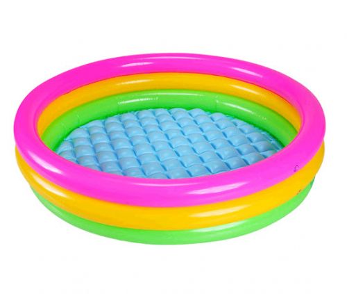 Дитячий надувний басейн “Кольори заходу”. Обсяг басейну при заповненні 80% – 300 л. Товщина стінки – 0.20 мм. Товщина дна – 0.18 мм. Надувне дно.
