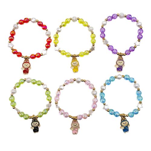 Дитячий браслет на руку з підвіскою у вигляді Лабубу. Має милий грайливий дизайн, з намистинами у вигляді кульок, зірочок та троянд. Носячи цю прикрасу, улюблений персонаж дитини завжди буде поруч з нею. В колекції присутні різноманітні кольори. Мінімальний діаметр браслета 4 см, основою прикраси є резинка, тож він гарно розтягується.