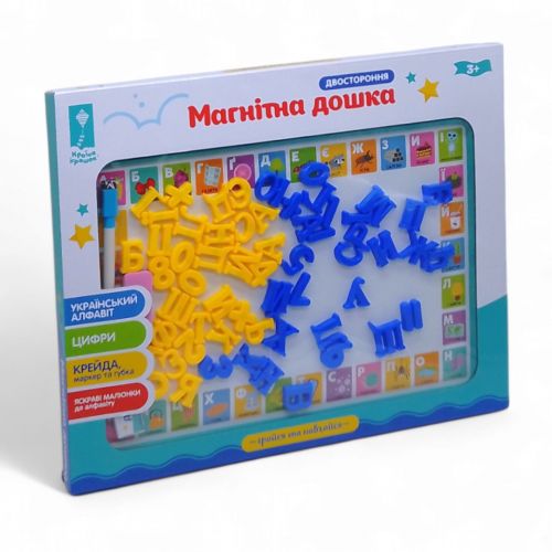 Двостороння дошка для малювання з магнітами “Український алфавіт” розміром 43 х 34 см – чудовий вибір для навчання та творчості. Одна сторона підходить для письма крейдою, інша для маркерів і магнітів. У наборі йдуть крейда, маркер, губка та магніти з літерами, що дозволяє вивчати алфавіт, малювати та створювати захоплюючі ігри. Зручний розмір та функціональність роблять дошку універсальним помічником для занять вдома або у школі.