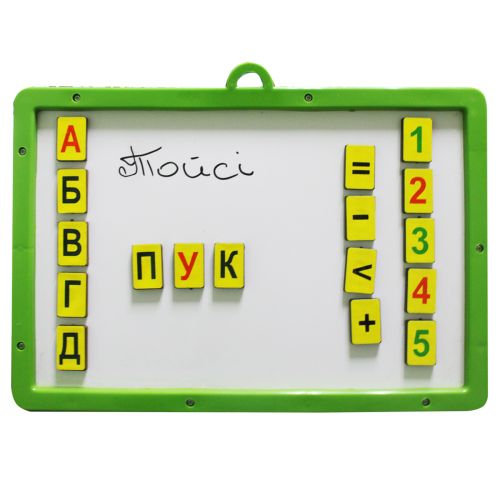 Комплектація: Дошка, літери, цифри, маркер, губка