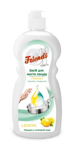 Завдяки ретельно підібраній рецептурі засоби для миття посуду «Friends» мають високу миючу здатність, чудово видаляють жир, мають приємні аромати, безпечні для людини і навколишнього середовища. Містять в своєму складі гліцерин, тим самим дбають про шкіру рук. Невеликою кількістю засобу відмивають велику кількість посуду, що при оптимальному співвідношенні ціни та якості дозволяє заощаджувати.