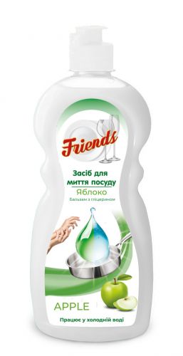 Завдяки ретельно підібраній рецептурі засоби для миття посуду «Friends» мають високу миючу здатність, чудово видаляють жир, мають приємні аромати, безпечні для людини і навколишнього середовища. Містять в своєму складі гліцерин, тим самим дбають про шкіру рук. Невеликою кількістю засобу відмивають велику кількість посуду, що при оптимальному співвідношенні ціни та якості дозволяє заощаджувати.