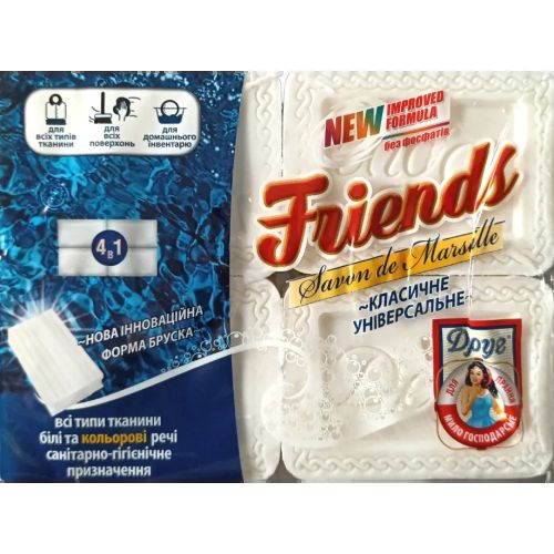 Господарське мило Друг створено з високоякісної сировини рослинного походження – пальмової та кокосової олій. Мило класичне в економічній упаковці.Всі види господарського мила Друг мають приємні парфумерні композиції, які надають білизні аромат чистоти і свіжості. Господарське мило активної дії! Ніколи ще чистота не була такою доступною! Цей Друг краще нових двох!